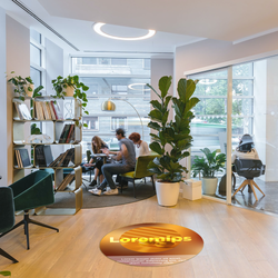 Digitally printed onto a non-PVC self adhesive film that is both non-slip and removable at end of life from either smooth floor surfaces or short pile commercial carpet.